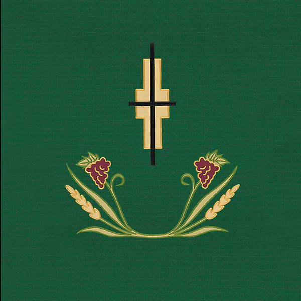 The 1169 The Harvest Antependiumis an applique with satin-stitch embroidery featuring a pole pocket for fastening the piece to furniture. Fabric at top of table will be of the same fabric as the drop portion with the exception of Normandy Brocade, Tudor Rose and Premium Tudor Rose. The standard table top fabric for these is made of white linen. Made in the USA This antependium can be purchased in many different fabrics and patterns. See the fabric chart on the "Content" tab below to determine what material each fabric/pattern is made of. Choose the fabric/pattern from the drop down menu above to determine pricing. Comes in standard size - 40" width (left to right) x 35" depth (top front to back) x 40" drop (area hanging in front). May be ordered in custom sizes. Please call our custom sales team at 1-800-237-7511 for additional help. **This product is custom made to order and therefore non-returnable. Please allow up to eight weeks for delivery**