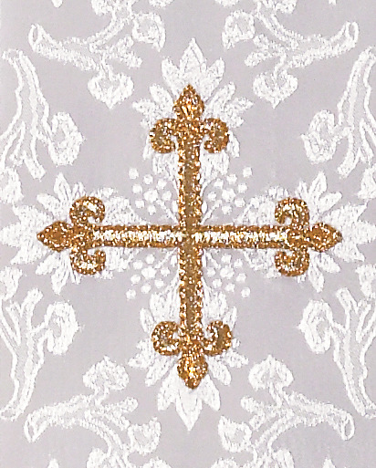 The Castle Craft Series 4300 Burse is all embroidered (no applique) bellows style with gussetted sides (limits opening) . Made in the USA. This Burse can be purchased in many different fabrics and patterns. See the fabric on the "Content" tab below to determine what material each fabric/pattern is made of. Choose the fabric/pattern from the drop down menu above to determine pricing. Comes in standard size - 8 1/2" width x 8 1/2" high. May be ordered in custom size book style (opens fully). Please call our custom sales team at 1-800-237-7511 for additional help. **This product is custom made to order and therefore non-returnable. Please allow up to eight weeks for delivery**