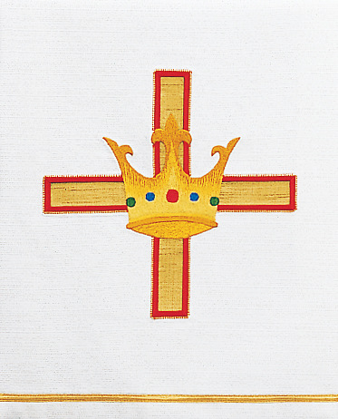 The Castle Craft Series 1171 Pulpit Scarf is primaily embroidered with some applique, couching and block fringe featuring a pole pocket for fastening the piece to furniture. Fabric at top of table will be of the same fabric as the drop portion with the exception of Angus Dei, Davinci Brocade, Ely, Normandy,Tudor Rose, Premium Angus Dei and Premium Tudor Rose. The standard table top fabric for these is made of white linen. Made in the USA This Pulpit Scarf can be purchased in many different fabrics and patterns. See the fabric guide on the "Content" tab to determine what material each fabric/pattern is made of. Choose the fabric/pattern from the drop down menu above to determine pricing. Comes in standard size - 20" width (left to right) x 20" depth (top front to back) x 20" drop (area hanging in front). May be ordered in custom sizes. Please call our custom sales team at 1-800-237-7511 for additional help. **This product is custom made to order and therefore non-returnable. Please allow up to eight weeks for delivery**