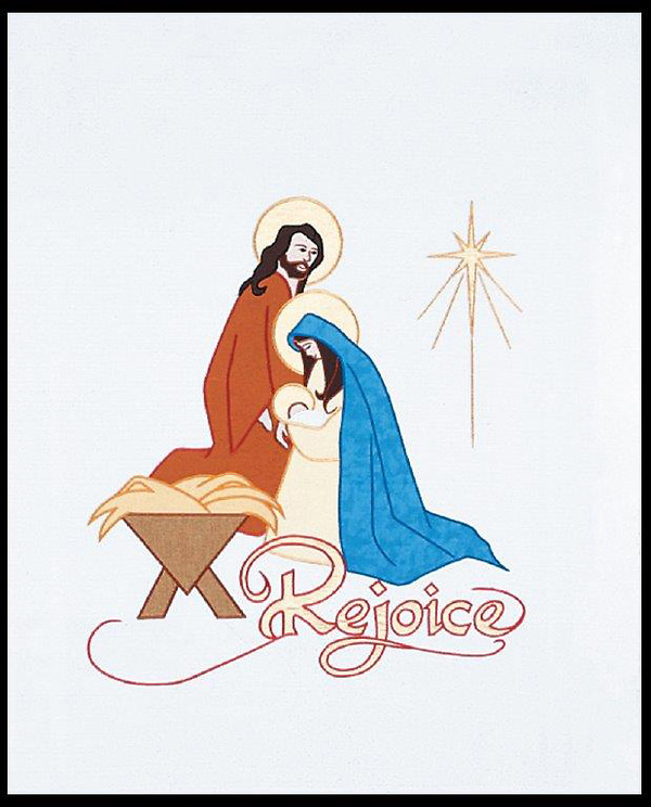 The1803 Exaltation Banner is an applique with satin-stitch embroidery featuring tabs at the top for fastening the piece to furniture and a pole pocket at the bottom. Made in the USA This Banner can be purchased in many different fabrics and patterns. See the fabric on the "Content" tab below to determine what material each fabric/pattern is made of. Choose the fabric/pattern from the drop down menu above to determine pricing. Comes in standard size - 36" width (left to right) x 54" drop (area hanging in front). May be ordered in custom sizes. Please call our custom sales team at 1-800-237-7511 for additional help. **This product is custom made to order and therefore non-returnable. Please allow up to eight weeks for delivery**