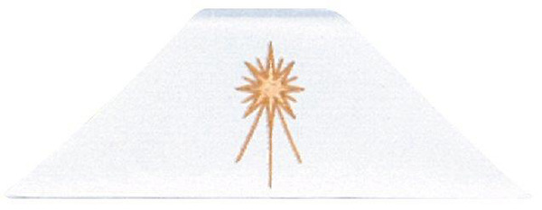 The 1803 Exaltation Veil is an applique with satin-stitch embroidery. Made in the USA. This Veil can be purchased in many different fabrics and patterns. See the fabric on the "Content" tab below to determine what material each fabric/pattern is made of. Choose the fabric/pattern from the drop down menu above to determine pricing. Comes in standard size - 21" width (left to right) x 21" length (top to bottom). May be ordered in custom sizes. Please call our custom sales team at 1-800-237-7511 for additional help. **This product is custom made to order and therefore non-returnable. Please allow up to eight weeks for delivery**