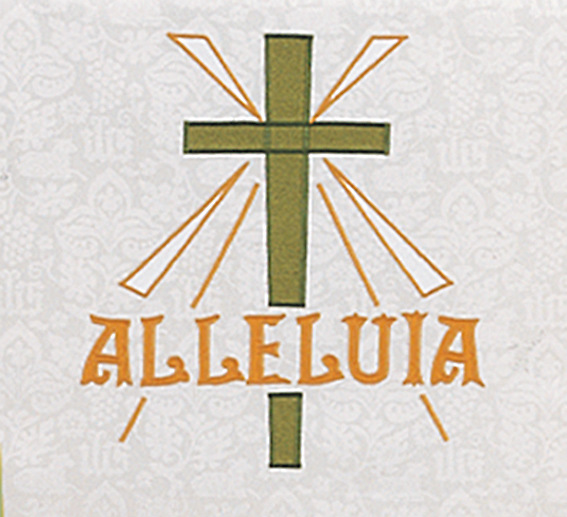 The 8118 Christ Has Risen Pulpit Scarf is an applique with satin-stitch embroidery featuring a pole pocket for fastening the piece to furniture. Fabric at top of table will be of the same fabric as the drop portion with the exception of Angus Dei, Davinci Brocade, Ely, Normandy,Tudor Rose, Premium Angus Dei and Premium Tudor Rose. The standard table top fabric for these is made of white linen. Made in the USA This Pulpit Scarf can be purchased in many different fabrics and patterns. See the fabric guide on the "Content" tab to determine what material each fabric/pattern is made of. Choose the fabric/pattern from the drop down menu above to determine pricing. Comes in standard size - 20" width (left to right) x 20" depth (top front to back) x 20" drop (area hanging in front). May be ordered in custom sizes. Please call our custom sales team at 1-800-237-7511 for additional help. **This product is custom made to order and therefore non-returnable. Please allow up to eight weeks for delivery**
