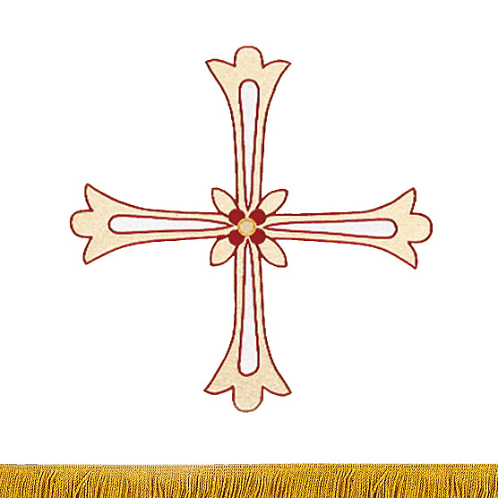 The 6610 Glorious Cross Pulpit Scarf is an applique with satin stitch embroidery featuring fringe at the bottom and a pole pocket for fastening the piece to furniture. Fabric at top of table will be of the same fabric as the drop portion with the exception of Angus Dei, Davinci Brocade, Ely, Normandy,Tudor Rose, Premium Angus Dei and Premium Tudor Rose. The standard table top fabric for these is made of white linen. Made in the USA This Pulpit Scarf can be purchased in many different fabrics and patterns. See the fabric guide on the "Content" tab to determine what material each fabric/pattern is made of. Choose the fabric/pattern from the drop down menu above to determine pricing. Comes in standard size - 20" width (left to right) x 20" depth (top front to back) x 20" drop (area hanging in front). May be ordered in custom sizes. Please call our custom sales team at 1-800-237-7511 for additional help. **This product is custom made to order and therefore non-returnable. Please allow up to eight weeks for delivery**