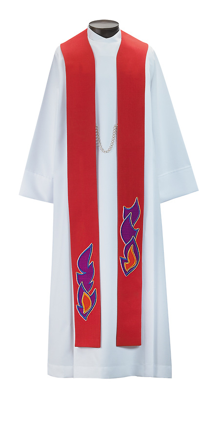 The Castle Craft 1196 Stole is primaily embroidered with some applique featuring a standard style with tapered neckline. Made in the USA. This stole can be purchased in many different fabrics and patterns. See the fabric guide on the "Content" tab to determine what material each fabric/pattern is made of. Choose the fabric/pattern from the drop down menu above to determine pricing. Comes in 2 standard sizes -100" or 112" length. May be ordered in custom sizes. Please call our custom sales team at 1-800-237-7511 for additional help. **This piece is custom made and is therefore non-returnable. Please allow up to eight weeks for delivery**