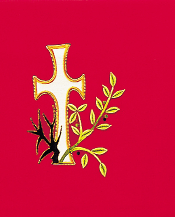 The Castle Craft Series 1098 pulpit scarf is primaily embroidered with some applique and couching featuring a pole pocket for fastening the piece to furniture. Fabric at top of table will be of the same fabric as the drop portion with the exception of Davinci Brocade, Ely Brocade, Normandy Brocade, and Tudor Rose. The standard table top fabric for these is made of white linen. Made in the USA This pulpit scarf can be purchased in many different fabrics and patterns. See the fabric guide on the "Content" tab to determine what material each fabric/pattern is made of. Choose the fabric/pattern from the drop down menu above to determine pricing. Comes in standard size - 20" width (left to right) x 20" depth (top front to back) x 20" drop (area hanging in front). May be ordered in custom sizes. Please call our custom sales team at 1-800-237-7511 for additional help. **This product is custom made to order and therefore non-returnable. Please allow up to eight weeks for delivery**