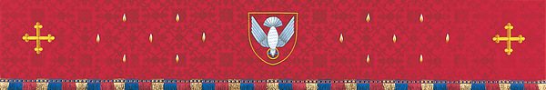 The Castle Craft Series 344/1309 superfrontal is all embroidered (no applique) with variegated fringe featuring a pole pocket for fastening the piece to furniture. Fabric at top of table is made of off-white linen. Made in the USA. This superfrontal can be purchased in many different fabrics and patterns. See the fabric guide on the "Content" tab to determine what material each fabric/pattern is made of. Choose the fabric/pattern from the drop down menu above to determine pricing. Comes in standard size - 84" width (left to right) x 30" depth (top front to back) x 12" drop (area hanging in front). May be ordered in custom sizes. Please call our custom sales team at 1-800-237-7511 for additional help. **This piece is custom made and is therefore non-returnable. Please allow up to eight weeks for delivery**
