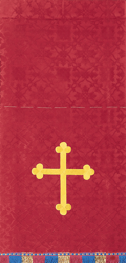 The Castle Craft Series 344/1309 pulpit scarf is all embroidered (no applique) with variegated fringe featuring a pole pocket for fastening the piece to furniture.Fabric at top of table will be of the same fabric as the drop portion with the exception of Davinci Brocade, Ely Brocade, Normandy Brocade, and Tudor Rose. The standard table top fabric for these is made of white linen. Made in the USA This pulpit scarf can be purchased in many different fabrics and patterns. See the fabric guide on the "Content" tab to determine what material each fabric/pattern is made of. Choose the fabric/pattern from the drop down menu above to determine pricing. Comes in standard size - 20" width (left to right) x 20" depth (top front to back) x 20" drop (area hanging in front). May be ordered in custom sizes. Please call our custom sales team at 1-800-237-7511 for additional help. **This product is custom made to order and therefore non-returnable. Please allow up to eight weeks for delivery**
