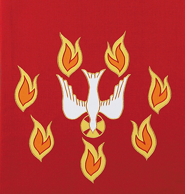 The 4001 Holy Fire lectern scarf is an applique with satin-stitch embroidery featuring a pole pocket for fastening the piece to furniture. Fabric at top of table will be of the same fabric as the drop portion with the exception of Davinci Brocade, Ely Brocade, Normandy Brocade, and Tudor Rose. The standard table top fabric for these is made of white linen. Made in the USA This lectern scarf can be purchased in many different fabrics and patterns. See the fabric on the "Content" tab below to determine what material each fabric/pattern is made of. Choose the fabric/pattern from the drop down menu above to determine pricing. Comes in standard size - 20" width (left to right) x 20" depth (top front to back) x 20" drop (area hanging in front). May be ordered in custom sizes. Please call our custom sales team at 1-800-237-7511 for additional help. **This product is custom made to order and therefore non-returnable. Please allow up to eight weeks for delivery**