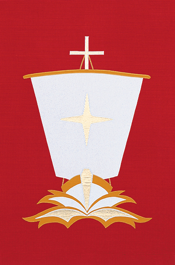 The 7117 Frontlet Set Banneris an applique with satin-stitch embroidery featuring tabs at the top for fastening the piece to furniture and a pole pocket at the bottom. Made in the USA This banner can be purchased in many different fabrics and patterns. See the fabric on the "Content" tab below to determine what material each fabric/pattern is made of. Choose the fabric/pattern from the drop down menu above to determine pricing. Comes in standard size - 36" width (left to right) x 54" drop (area hanging in front). May be ordered in custom sizes. Please call our custom sales team at 1-800-237-7511 for additional help. **This product is custom made to order and therefore non-returnable. Please allow up to eight weeks for delivery**