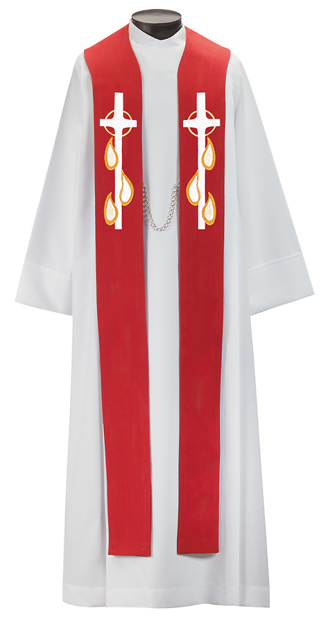 The7117 Frontlet Set Cross Stole is applique with satin-stitch embroidery featuring a standard style with tapered neckline. Made in the USA. This stole can be purchased in many different fabrics and patterns. See the fabric guide on the "Content" tab to determine what material each fabric/pattern is made of. Choose the fabric/pattern from the drop down menu above to determine pricing. Comes in 2 standard sizes -100" or 112" length. May be ordered in custom sizes. Please call our custom sales team at 1-800-237-7511 for additional help. **This piece is custom made and is therefore non-returnable. Please allow up to eight weeks for delivery**