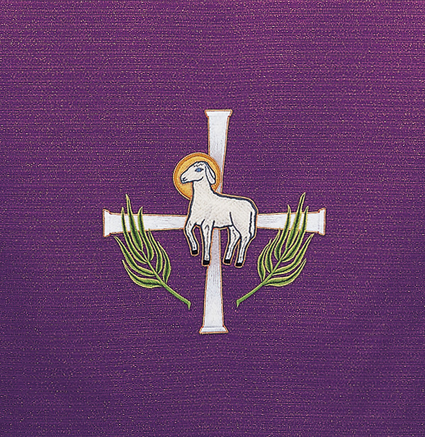 Gaspard Castle Craft 1173 Antependium is all embroidered (no applique) with couching featuring a pole pocket for fastening the piece to furniture. Fabric at top of table will be of the same fabric as the drop portion with the exception of Agnus Dei, Davinci Brocade, Normandy Brocade, Tudor Rose and Premium Normandy Brocade. The standard table top fabric for these is made of white linen. Made in the USA This antependium can be purchased in many different fabrics and patterns. See the fabric chart on the "Content" tab below to determine what material each fabric/pattern is made of. Choose the fabric/pattern from the drop down menu above to determine pricing. Comes in standard size - 40" width (left to right) x 35" depth (top front to back) x 40" drop (area hanging in front). May be ordered in custom sizes. Please call our custom sales team at 1-800-237-7511 for additional help. **This product is custom made to order and therefore non-returnable. Please allow up to eight weeks for delivery**