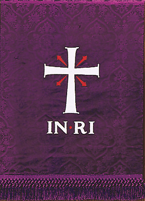 The Castle Craft Series 362/883 pulpit scarf is all embroidered (no applique) with knotted fringe at the bottom featuring a pole pocket for fastening the piece to furniture. Fabric at top of table is made of off-white linen. Made in the USA. This pulpit scarf can be purchased in many different fabrics and patterns. See the fabric guide on the "Content" tab to determine what material each fabric/pattern is made of. Choose the fabric/pattern from the drop down menu above to determine pricing. Comes in standard size - 20" width (left to right) x 20" depth (top front to back) x 20" drop (area hanging in front). May be ordered in custom sizes. Please call our custom sales team at 1-800-237-7511 for additional help. **This product is custom made to order and therefore non-returnable. Please allow up to eight weeks for delivery**