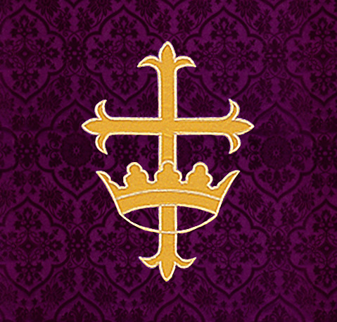 The 5226 The Crown lectern scarf is an applique with satin-stitch embroidery featuring a pole pocket for fastening the piece to furniture. Fabric at top of table is made of off-white linen. Made in the USA. This lectern scarf can be purchased in many different fabrics and patterns. See the fabric on the "Content" tab below to determine what material each fabric/pattern is made of. Choose the fabric/pattern from the drop down menu above to determine pricing. Comes in standard size - 20" width (left to right) x 20" depth (top front to back) x 20" drop (area hanging in front). May be ordered in custom sizes. Please call our custom sales team at 1-800-237-7511 for additional help. **This product is custom made to order and therefore non-returnable. Please allow up to eight weeks for delivery**