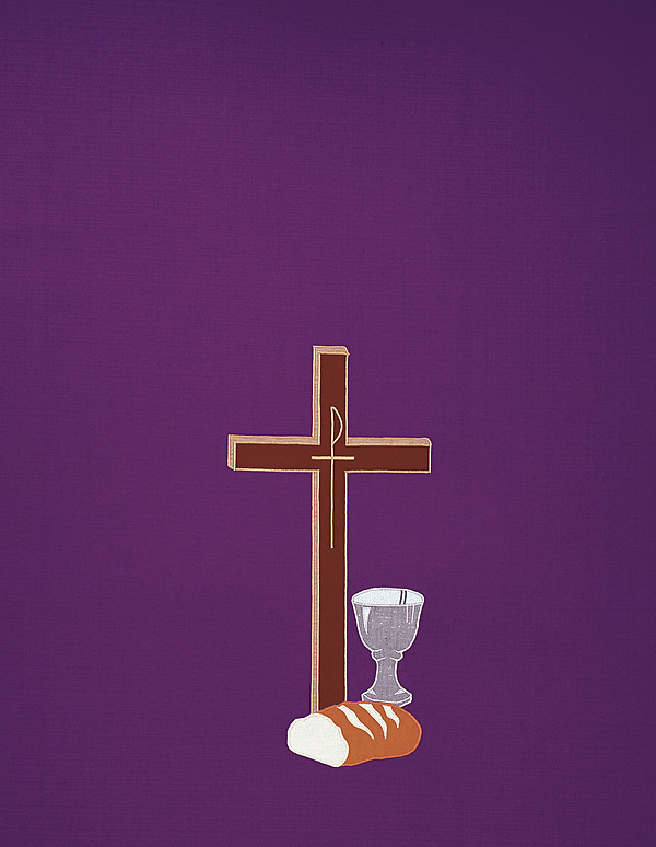 The 5270 The Last Supper lectern scarf is an applique with satin-stitch embroidery featuring a pole pocket for fastening the piece to furniture. Fabric at top of table is made of off-white linen. Made in the USA. This lectern scarf can be purchased in many different fabrics and patterns. See the fabric on the "Content" tab below to determine what material each fabric/pattern is made of. Choose the fabric/pattern from the drop down menu above to determine pricing. Comes in standard size - 20" width (left to right) x 20" depth (top front to back) x 20" drop (area hanging in front). May be ordered in custom sizes. Please call our custom sales team at 1-800-237-7511 for additional help. **This product is custom made to order and therefore non-returnable. Please allow up to eight weeks for delivery**