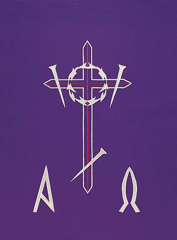 Gaspard 8410 Agony & Death of Jesus Antependium is an applique with satin-stitch embroidery featuring a pole pocket for fastening the piece to furniture. Fabric at top of table will be of the same fabric as the drop portion with the exception of Agnus Dei, Davinci Brocade, Normandy Brocade, Tudor Rose and Premium Normandy Brocade. The standard table top fabric for these is made of white linen. Made in the USA This antependium can be purchased in many different fabrics and patterns. See the fabric chart on the "Content" tab below to determine what material each fabric/pattern is made of. Choose the fabric/pattern from the drop down menu above to determine pricing. Comes in standard size - 40" width (left to right) x 35" depth (top front to back) x 40" drop (area hanging in front). May be ordered in custom sizes. Please call our custom sales team at 1-800-237-7511 for additional help. **This product is custom made to order and therefore non-returnable. Please allow up to eight weeks for delivery**