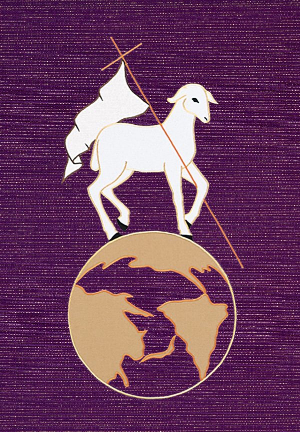 The 5195 Sacrifice I Banner is an applique with satin-stitch embroidery featuring tabs at the top for fastening the piece to furniture and a pole pocket at the bottom. Made in the USA This banner can be purchased in many different fabrics and patterns. See the fabric on the "Content" tab below to determine what material each fabric/pattern is made of. Choose the fabric/pattern from the drop down menu above to determine pricing. Comes in standard size - 36" width (left to right) x 54" drop (area hanging in front). May be ordered in custom sizes. Please call our custom sales team at 1-800-237-7511 for additional help. **This product is custom made to order and therefore non-returnable. Please allow up to eight weeks for delivery**