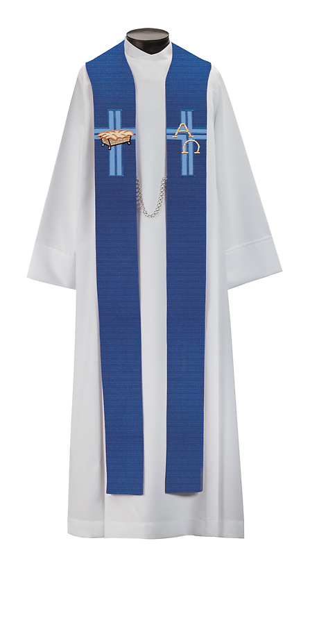 The 1743 Anticipation Stole is applique with satin-stitch embroidery featuring a standard style with tapered neckline. Made in the USA. This stole can be purchased in many different fabrics and patterns. See the fabric guide on the "Content" tab to determine what material each fabric/pattern is made of. Choose the fabric/pattern from the drop down menu above to determine pricing. Comes in 2 standard sizes -100" or 112" length. May be ordered in custom sizes. Please call our custom sales team at 1-800-237-7511 for additional help. **This piece is custom made and is therefore non-returnable. Please allow up to eight weeks for delivery**