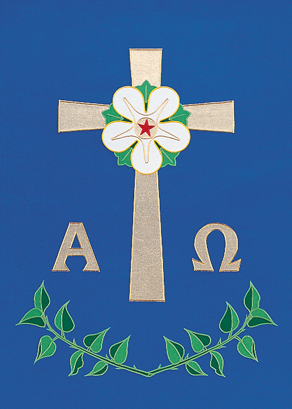 The 1778 The Messiah Banner is an applique with satin-stitch embroidery featuring tabs at the top for fastening the piece to furniture and a pole pocket at the bottom. Made in the USA This banner can be purchased in many different fabrics and patterns. See the fabric on the "Content" tab below to determine what material each fabric/pattern is made of. Choose the fabric/pattern from the drop down menu above to determine pricing. Comes in standard size - 36" width (left to right) x 54" drop (area hanging in front). May be ordered in custom sizes. Please call our custom sales team at 1-800-237-7511 for additional help. **This product is custom made to order and therefore non-returnable. Please allow up to eight weeks for delivery**