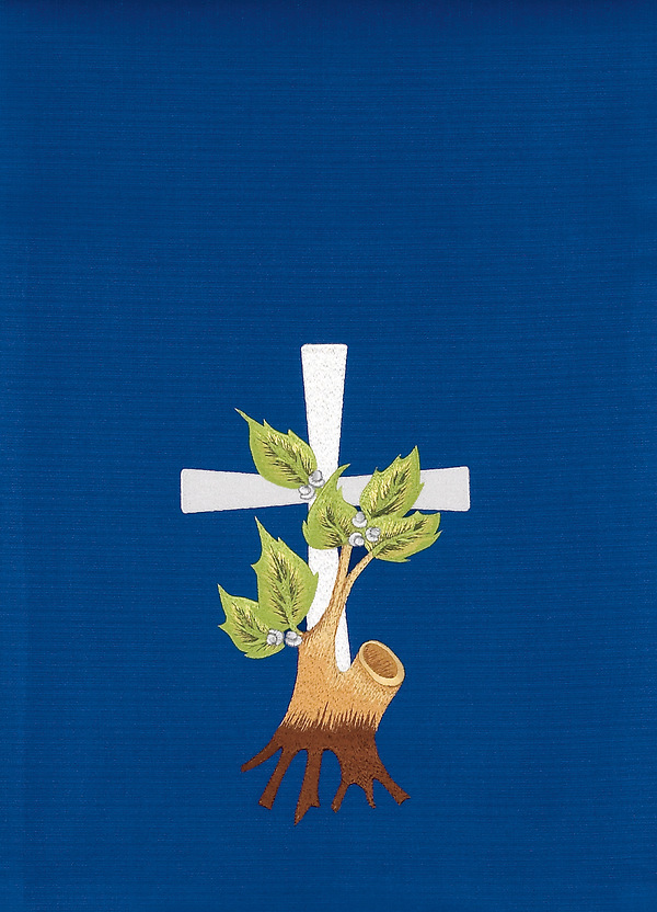 The Castle Craft Series 1319 pulpit scarf is primaily embroidered with some applique featuring a pole pocket for fastening the piece to furniture. Fabric at top of table will be of the same fabric as the drop portion with the exception of Agnus Dei, Davinci Brocade, Normandy Brocade, Tudor Rose and Premium Normandy Brocade. The standard table top fabric for these is made of white linen. Made in the USA. This pulpit scarf can be purchased in many different fabrics and patterns. See the fabric guide on the "Content" tab to determine what material each fabric/pattern is made of. Choose the fabric/pattern from the drop down menu above to determine pricing. Comes in standard size - 20" width (left to right) x 20" depth (top front to back) x 20" drop (area hanging in front). May be ordered in custom sizes. Please call our custom sales team at 1-800-237-7511 for additional help. **This product is custom made to order and therefore non-returnable. Please allow up to eight weeks for delivery**