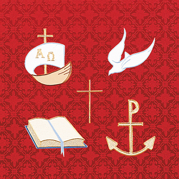 Gaspard 4265 Triune God Antependium is an applique with satin-stitch embroidery featuring a pole pocket for fastening the piece to furniture. Fabric at top of table will be of the same fabric as the drop portion with the exception of Davinci Brocade, Ely Brocade, Normandy Brocade, and Tudor Rose. The standard table top fabric for these is made of white linen. Made in the USA This antependium can be purchased in many different fabrics and patterns. See the fabric chart on the "Content" tab below to determine what material each fabric/pattern is made of. Choose the fabric/pattern from the drop down menu above to determine pricing. Comes in standard size - 40" width (left to right) x 35" depth (top front to back) x 40" drop (area hanging in front). May be ordered in custom sizes. Please call our custom sales team at 1-800-237-7511 for additional help. **This product is custom made to order and therefore non-returnable. Please allow up to eight weeks for delivery**