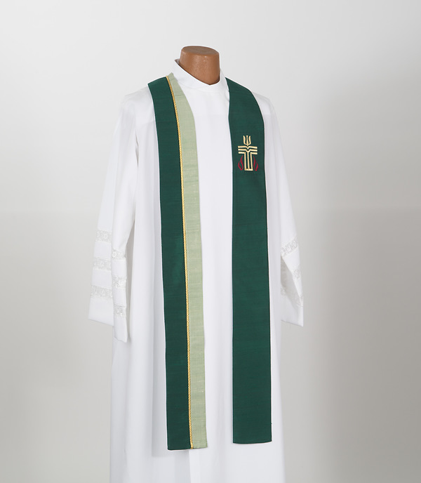 Light overcomes darkness, just as our Faith allows us to shine our light and bring a beacon of hope to others. This luminous stole symbolizes the contrast of light and dark along with the Presbyterian seal embroidered on the left side of the stole. Made in silk dupioni in two-tone hues of the liturgical colors. The curved design helps it stay put on your neck.