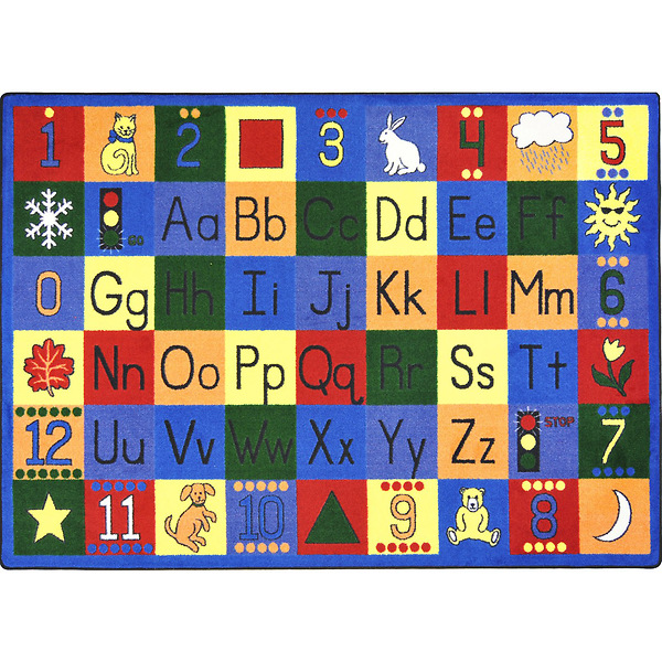 will find numbers, upper case and lower case alphabet, seasons, shapes, animals, and fun on this appealing classroom rug.