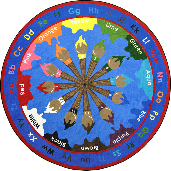 Learn basic colors, numbers, and upper and lower case letters on this attractive rug with a unique "paint brush" theme.