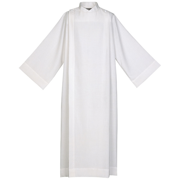 This alb is made of 100% polyester Abbey weave and features Velcro closures. Also available with button closures (see style 423). Made in the USA.