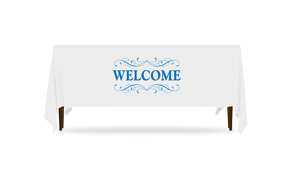 Make your lobby and welcome center area more informative and attractive with tables featuring eye-catching attractive Table Throws. Order any Table Throw design exactly as it’s shown - they are printed on wrinkle-resistant polyester poplin and are machine washable and are available to fit both a six foot or eight foot table. Table throws also come in both three-sided and four-sided format. The three sided throw makes it easy to sit behind the table or to access items stored underneath the table. The four sided throw covers all sides of the table for a more finished look when the table is not against a wall. Imagine how organized and professional your lobby and hallways will look when all your tables have a uniform and professionally printed Table Throw.