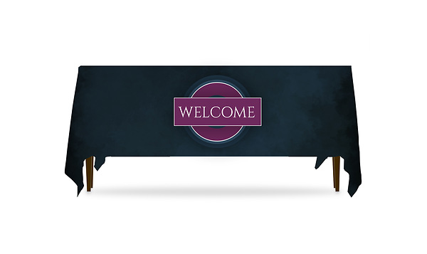 Make your lobby and welcome center area more informative and attractive with tables featuring eye-catching attractive Table Throws. Order any Table Throw design exactly as it’s shown - they are printed on wrinkle-resistant polyester poplin and are machine washable and are available to fit both a six foot or eight foot table. Table throws also come in both three-sided and four-sided format. The three sided throw makes it easy to sit behind the table or to access items stored underneath the table. The four sided throw covers all sides of the table for a more finished look when the table is not against a wall. Imagine how organized and professional your lobby and hallways will look when all your tables have a uniform and professionally printed Table Throw.