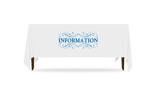 Make your lobby and welcome center area more informative and attractive with tables featuring eye-catching attractive Table Throws. Order any Table Throw design exactly as it’s shown - they are printed on wrinkle-resistant polyester poplin and are machine washable and are available to fit both a six foot or eight foot table. Table throws also come in both three-sided and four-sided format. The three sided throw makes it easy to sit behind the table or to access items stored underneath the table. The four sided throw covers all sides of the table for a more finished look when the table is not against a wall. Imagine how organized and professional your lobby and hallways will look when all your tables have a uniform and professionally printed Table Throw.