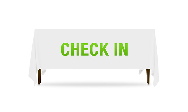 Make your lobby and welcome center area more informative and attractive with tables featuring eye-catching attractive Table Throws. Order any Table Throw design exactly as it’s shown - they are printed on wrinkle-resistant polyester poplin and are machine washable and are available to fit both a six foot or eight foot table. Table throws also come in both three-sided and four-sided format. The three sided throw makes it easy to sit behind the table or to access items stored underneath the table. The four sided throw covers all sides of the table for a more finished look when the table is not against a wall. Imagine how organized and professional your lobby and hallways will look when all your tables have a uniform and professionally printed Table Throw.
