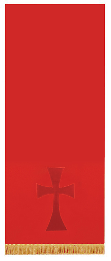 Inspired by the very popular Pure and Simple Cross Applique Stoles, this pulpit scarf is perfect choice for those looking for a simple yet elegant parament. Standard size is 18" wide x 44" long. Available in all liturgical colors: Red, Green, Purple, White, and Blue. Made of trigger fabric lined in the same color trigger fabric. Trigger is a blend of polyester and combed cotton.
