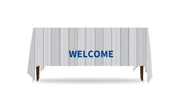 Make your lobby and welcome center area more informative and attractive with tables featuring eye-catching attractive Table Throws. Order any Table Throw design exactly as it’s shown - they are printed on wrinkle-resistant polyester poplin and are machine washable and are available to fit both a six foot or eight foot table. Table throws also come in both three-sided and four-sided format. The three sided throw makes it easy to sit behind the table or to access items stored underneath the table. The four sided throw covers all sides of the table for a more finished look when the table is not against a wall. Imagine how organized and professional your lobby and hallways will look when all your tables have a uniform and professionally printed Table Throw.