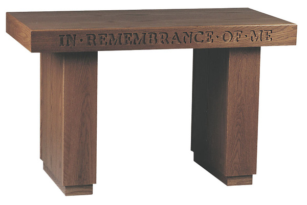 A standard style communion table that can be found in countless churches of all denominations. Made in the USA of wood and available in 16 different finishes, this communion table features IN REMEMBRANCE OF ME engraved across the front.