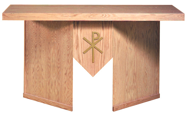 A well-designed altar that disassembles for easy storage. Features a Paschal symbol located on the center front of the altar. Available in 16 different wood finishes with a water resistant lacquer.