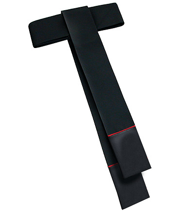 This band cincture is made of black Viva with black Imperial Satin and scarlet piping on the front drops. Velcro® closure. Men's even sizes from 34" to 52". Intended to be worn with Murphy's