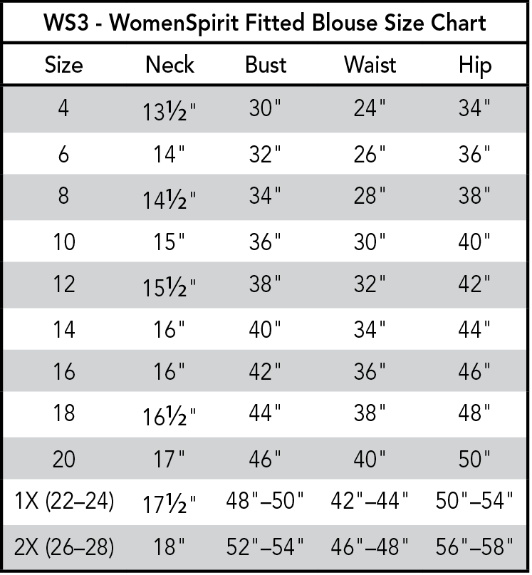 100% Cotton End on End Weave, and Black in 65% Polyester/35% Cotton Broadcloth. Made in USA of imported fabric. Includes one collar tab. Available in sizes 4-16. For larger sizes see WomenSpirit's 3/4 Sleeve Shapely Clergy Blouse.
