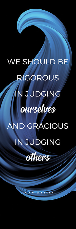 Text: "We should be rigorous in judging ourselves and gracious in judging others" - John Wesley