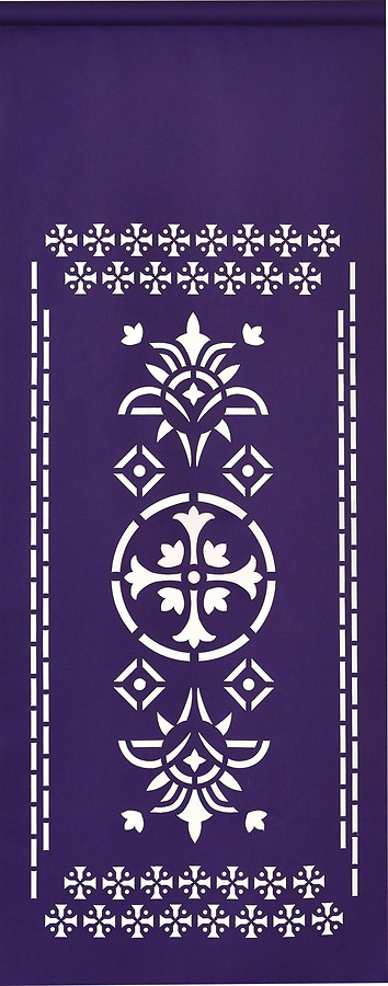 The Ecclesiastical Collection unlined pulpit scarf features a unique lattice design that allows the pulpit to be partially seen though the overlay. Available in Blue, Green, Purple, and Red. Dimensions: 18" wide by 44" long. Made in the USA.