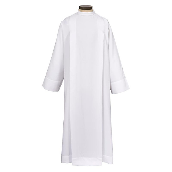 The roll collar alb is a full cut alb with zipper closure at the shoulder and a roll collar. Tailored with care and attention to detail makes this alb drape nicely and fit perfectly.