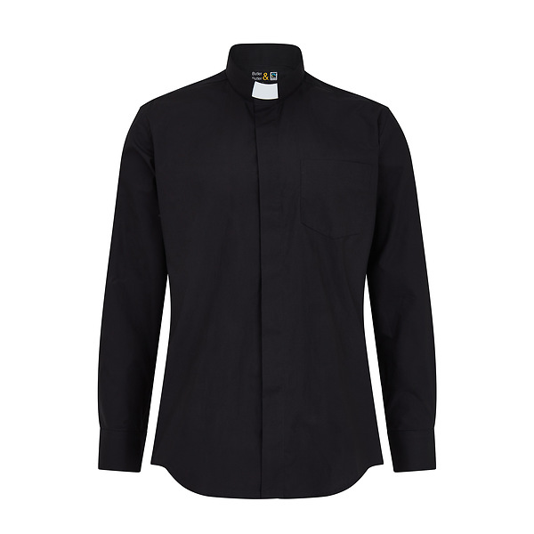 Fair Trade Men's Cotton Black Long Sleeve Tab Collar Clergy Shirt