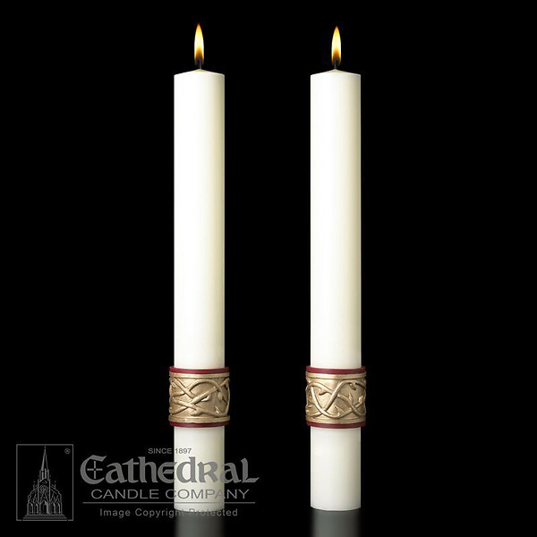 These attractive Altar Candles act to enhance the presence of the Paschal Candle - a perfect decorative touch! 51% Beeswax. Sold as pair. Made in the USA.